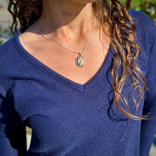 Gemstone pendants and necklaces set in sterling silver or gold.