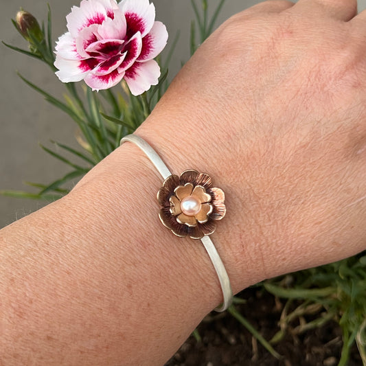 Bronze Flower & Pearl Cuff Bracelet ✧ Made-to-Order